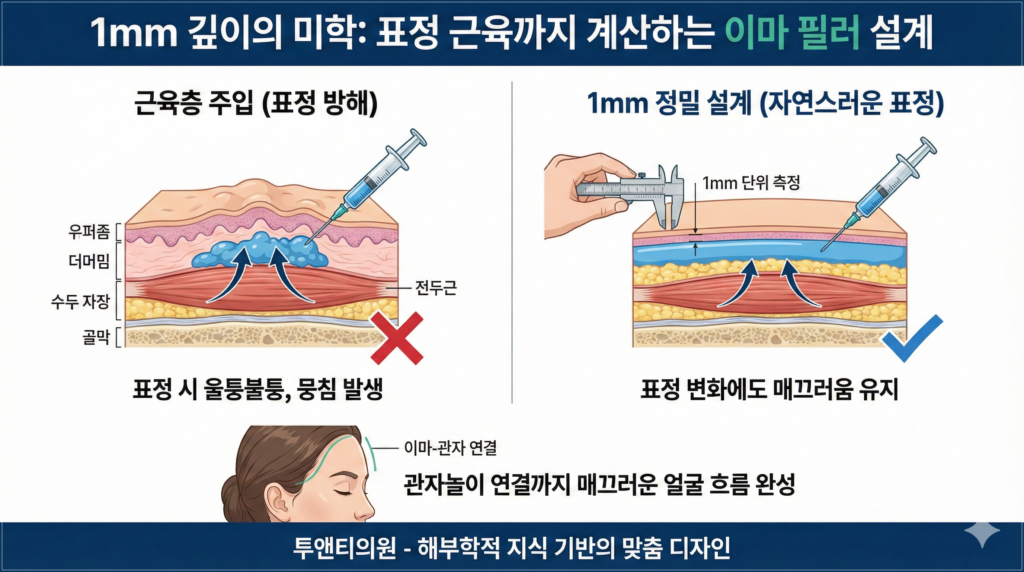 이마필러디자인 핵심은 단순히 볼륨을 채우는 것이 아니라, 개개인의 골격 구조와 근육의 움직임을 고려하여 필러가 안착할 최적의 층을 설계하는 데 있으며 투앤티의원 최요한 원장이 그 해답을 제시합니다.