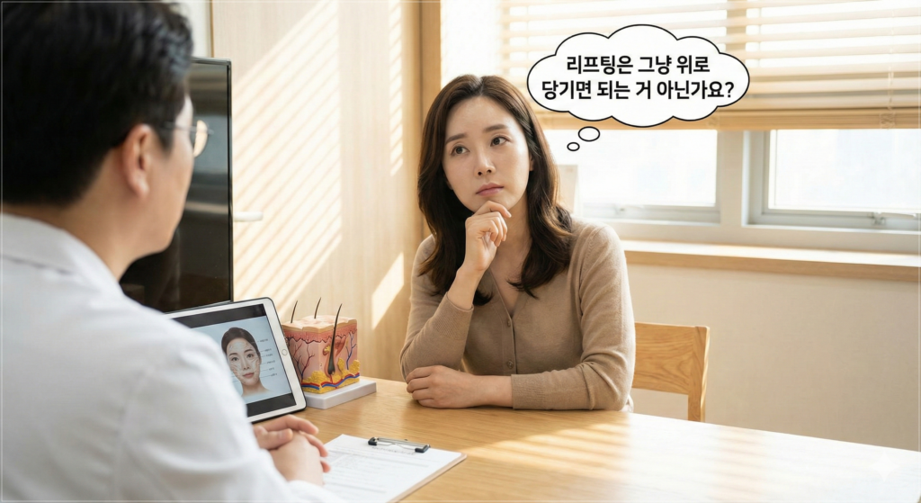 수많은 리프팅 장비 중에서도 특정 시술이 유독 주목받는 이유는 분명 존재하지만, 의사인 제 입장에서는 장비의 이름보다 환자분의 얼굴을 누르는 ‘무게의 중심’이 어디에 있는지를 먼저 살피게 되곤 해요.